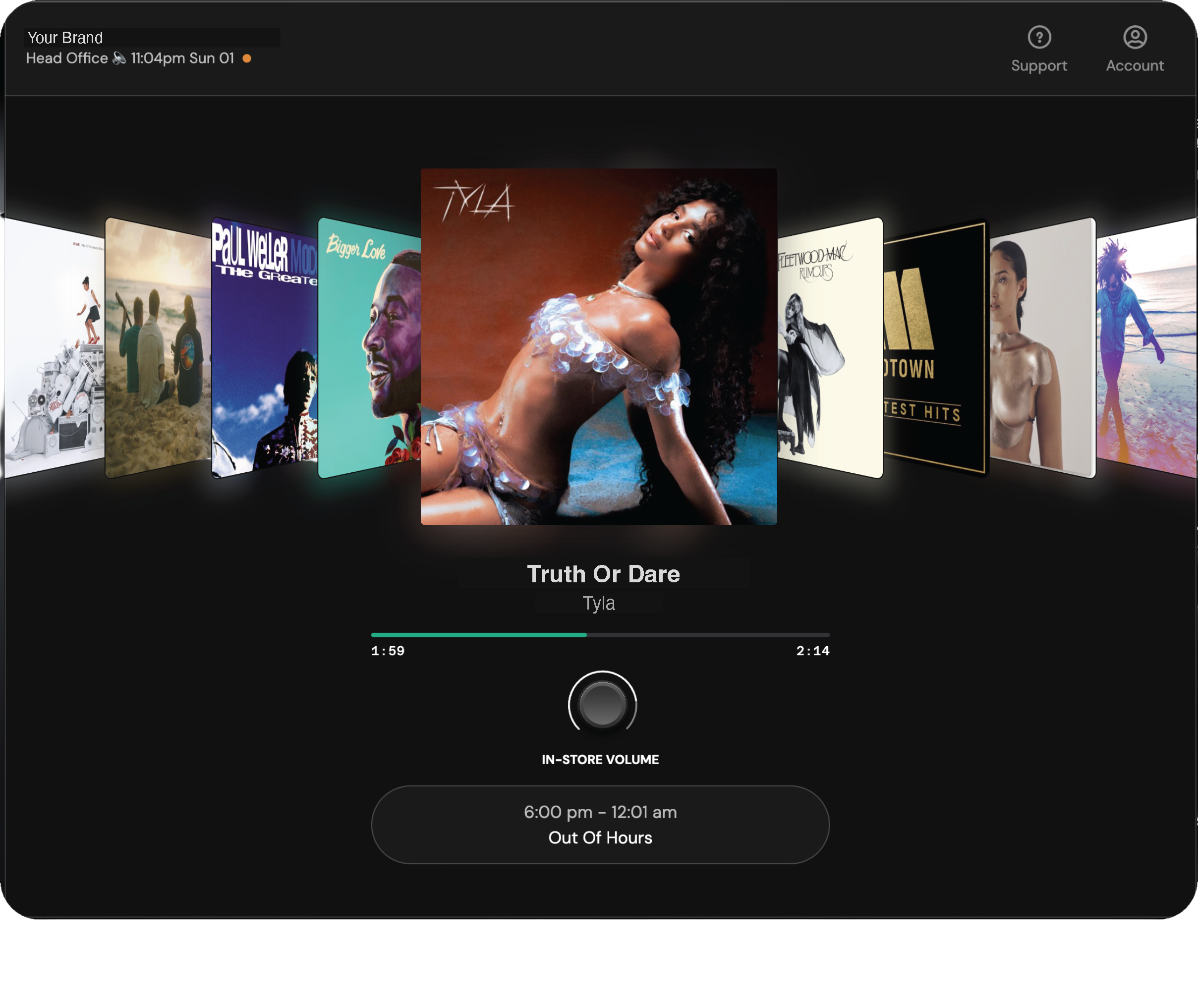 Decades spent in the global music industry, paired with a deep understanding of brand and customer experience, combine to fuel uniquely tailored soundscapes. When combined with innovative, intuitive, and reliable technology you’ll have the utmost confidence in the sound in your stores.